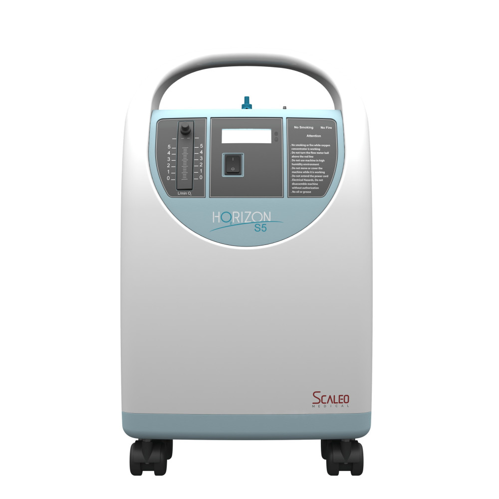Kyslíkový koncentrátor Horizon S5 od společnosti Scaleo Medical je spolehlivé řešení pro dlouhodobou i krátkodobou oxygenoterapii v domácím prostředí i ve zdravotnických zařízeních. Horizon S5 zajišťuje nepřetržitou dodávku koncentrovaného kyslíku z okolního vzduchu bez nutnosti výměny tlakových lahví. Moderní technologie filtrace a řízení průtoku umožňují bezpečný a komfortní provoz. Díky intuitivnímu ovládání je koncentrátor Horizon S5 snadno použitelný i pro starší uživatele. Přístroj je navržen tak, aby vyžadoval minimální údržbu a byl připraven k provozu kdykoliv je potřeba.